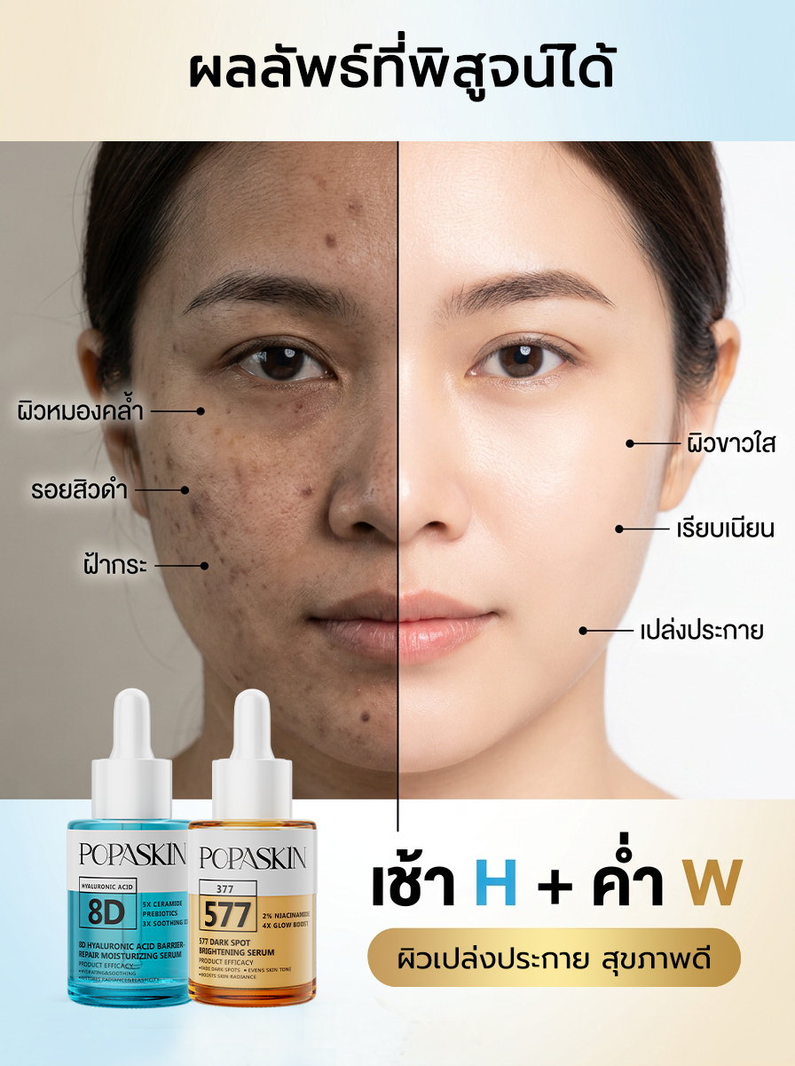 POPASKIN เซตบำรุงผิวชุ่มชื้นกระจ่างใส สูตรกลางวันและกลางคืน
