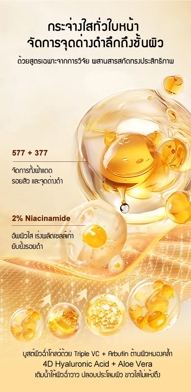 - คุณสมบัติ: * ดูแลปัญหารอยดำและจุดด่างดำอย่างตรงจุด