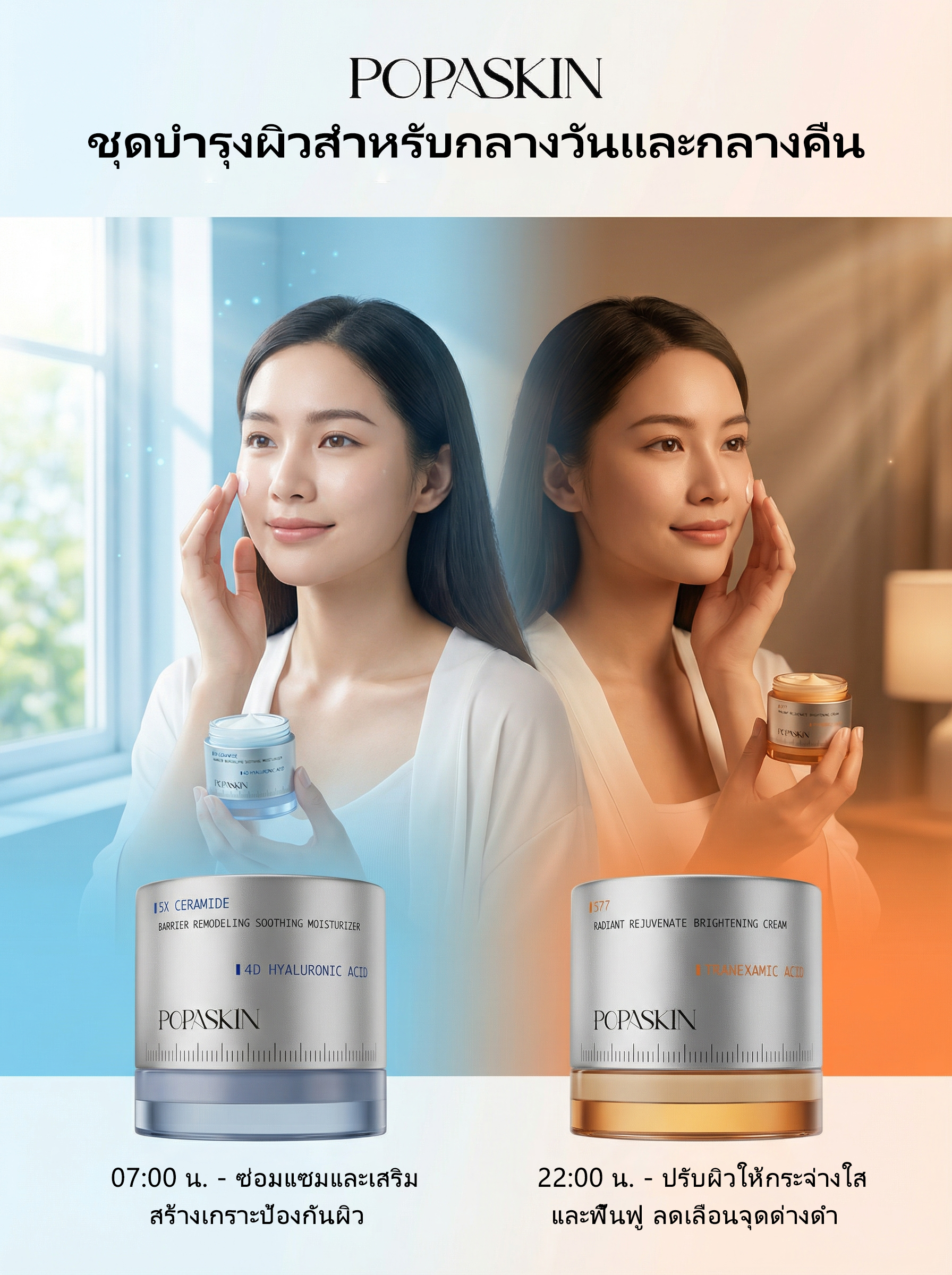 POPASKIN เซตครีมกู้ปราการผิว พร้อมปรับผิวให้ขาวกระจ่างใส