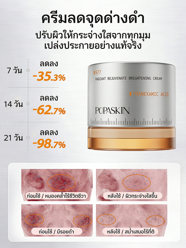 1.POPASKIN ครีมลดเลือนจุดด่างดำเพื่อผิวขาวกระจ่างใส